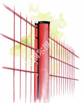 3.桃形立柱---立柱兩側有折彎的凹槽、便于卡住護欄網(wǎng)、使其美觀。適用于三角折彎護欄網(wǎng)、主要用于園林、小區(qū)防護等。